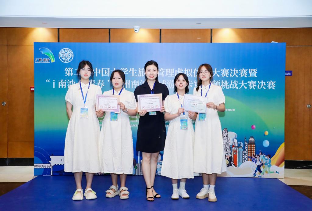 5月19日,由中国旅游协会旅游教育分会、南开大学旅游与服务学院联合主办的第二届中国大学生旅游管理虚拟仿真大赛决赛暨“I南沙 正青春”广州南沙全域游打卡短视频挑战大赛决赛在广州南沙落下帷幕。历史文化与旅游学院旅游管理专业学生陈朵红、张婷婷、张欣楠、周洁组队参加了全国总决赛,经过激励比拼,荣获全国三等奖1项,全国优胜奖1项,指导老师柳淑蓉荣获“优秀指导教师”荣誉称号。