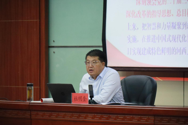 会上,杜明奎从党的二十届三中全会的重大时代意义和深远历史影响、习近平总书记在党的二十届三中全会上的重要讲话精神、进一步全面深化改革的重大措施、全力以赴抓好全会精神的贯彻落实四个方面进行了详细阐述和讲解。
