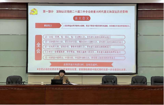 报告会紧扣宣讲主题,从深刻认识党的二十届三中全会的重大意义、全面准确理解《决定》提出的进一步全面深化改革重大举措、全力以赴抓好全会精神贯彻落实等方面,对全会精神作了全面阐释和深入解读。