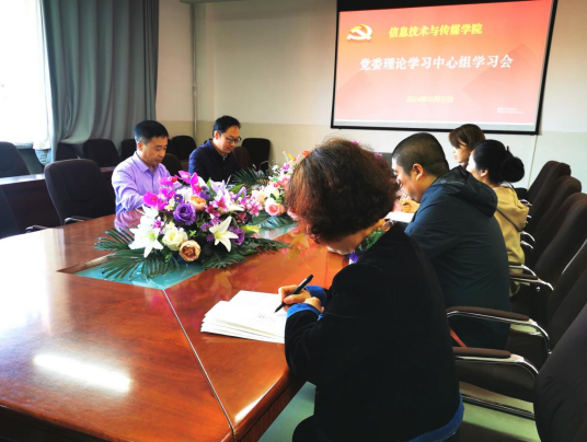 10月12日下午,信息技术与传媒学院召开党委理论学习中心组专题学习会,深入学习贯彻习近平总书记在党的二十届三中全会上的重要讲话和全会精神,学习习近平总书记视察甘肃的重要讲话精神,贯彻落实相关工作部署。