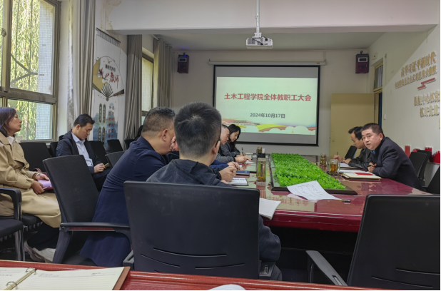 10月17日下午,土木工程学院在学院四楼会议室召开党委理论学习中心组暨教职工政治理论学习会。学院党委理论学习中心组成员和全体教职工参加。