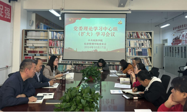 10月17日,经济管理学院召开党委理论学习中心组(扩大)学习会,学院党委理论学习中心组成员、教工和学生党支部委员参加会议。