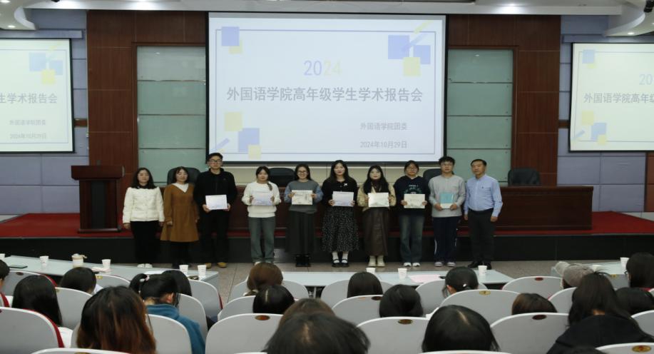 为进一步提升学生自主学习能力,10月29日,外国语学院在图书馆二楼报告厅举办高年级学生学术报告会。学院负责人、班主任、辅导员、2023级和2024级同学等共计300余人参加。