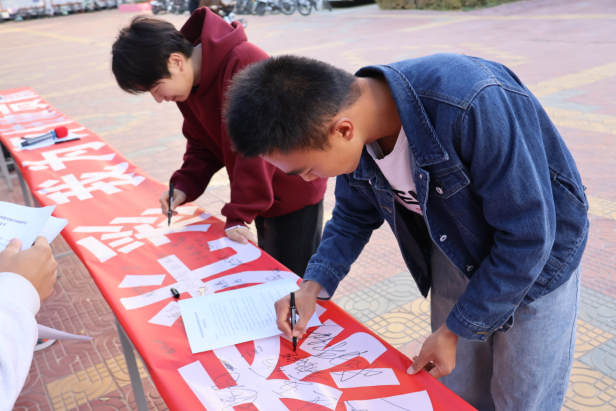 活动现场,学生们纷纷参与其中,积极在横幅上签名,表达对学校评估工作的支持和期待。学院发放倡议书,号召大家提高到课率、前排率、抬头率,遵守学校规章制度,以饱满的热情、崭新的面貌投入到本科教学工作审核评估中,增强参与学校迎评促建工作的责任感和紧迫感。