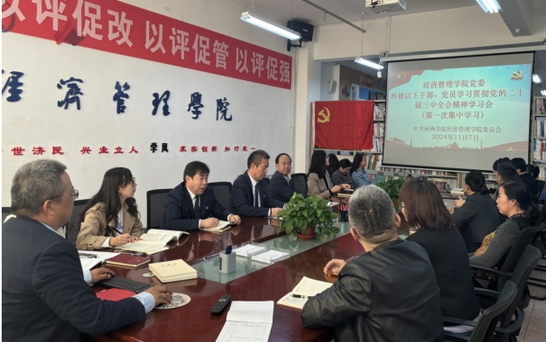 为进一步推动学习贯彻党的二十届三中全会精神走深走实,11月7日下午,经济管理学院科级及以下干部、党员学习贯彻党的二十届三中全会精神培训班第一场培训会在学院会议室召开。
