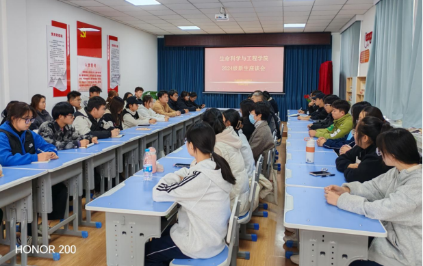 为深入了解2024级新生入学以来的学习和生活情况,增进学院与新生之间的沟通与交流,帮助新生更好地适应大学生活,11月15日,生命科学与工程学院组织召开2024级新生座谈会。学院负责人、各教研室负责人、辅导员以及学生代表共50余人参加座谈。