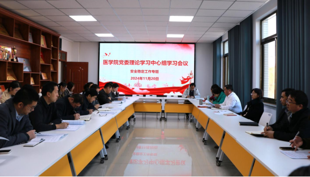 11月20日,医学院召开党委理论学习中心组学习会议专题学习习近平总书记重要论述、重要指示精神,传达教育部、省教育厅、学校党委有关会议精神,研究部署学院安全稳定工作。
