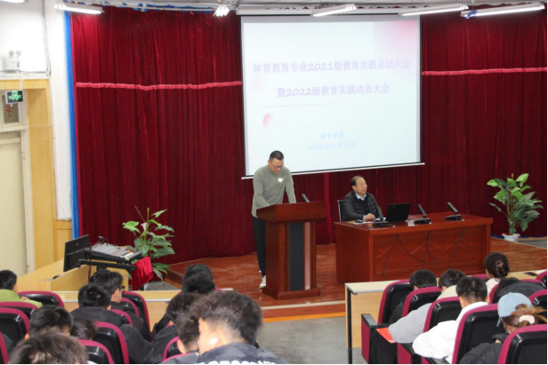11月22日,体育学院在学术二厅召开2021级教育实习总结大会暨2022级实习动员大会,学院负责人、实习带队老师与2021、2022级全体学生参加。