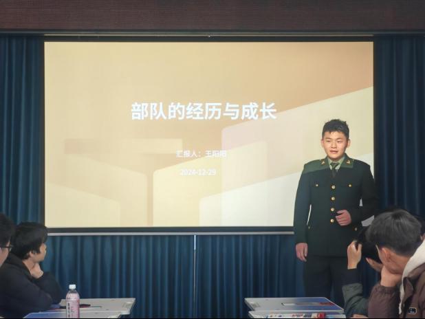 宣讲会上,学院辅导员详细解读了当前国家征兵政策要点,从征兵的基本条件、入伍流程、优惠政策等方面进行了全面深入的介绍,使同学们认识到参军入伍是履行保家卫国的光荣义务和个人成长发展的重要机遇。随后,3位退伍复学学生代表和1名现役考取国防科技大学士兵的同学,线上线下分别分享了他们的军旅生涯和收获感悟,讲述了自己从初入军营时的懵懂少年到逐渐成长为一名坚毅军人的蜕变过程,部队磨砺培养的坚韧不拔的优秀意志品质将伴随自己一生,重返校园后能够从容地面对学习和生活中的各种挑战。