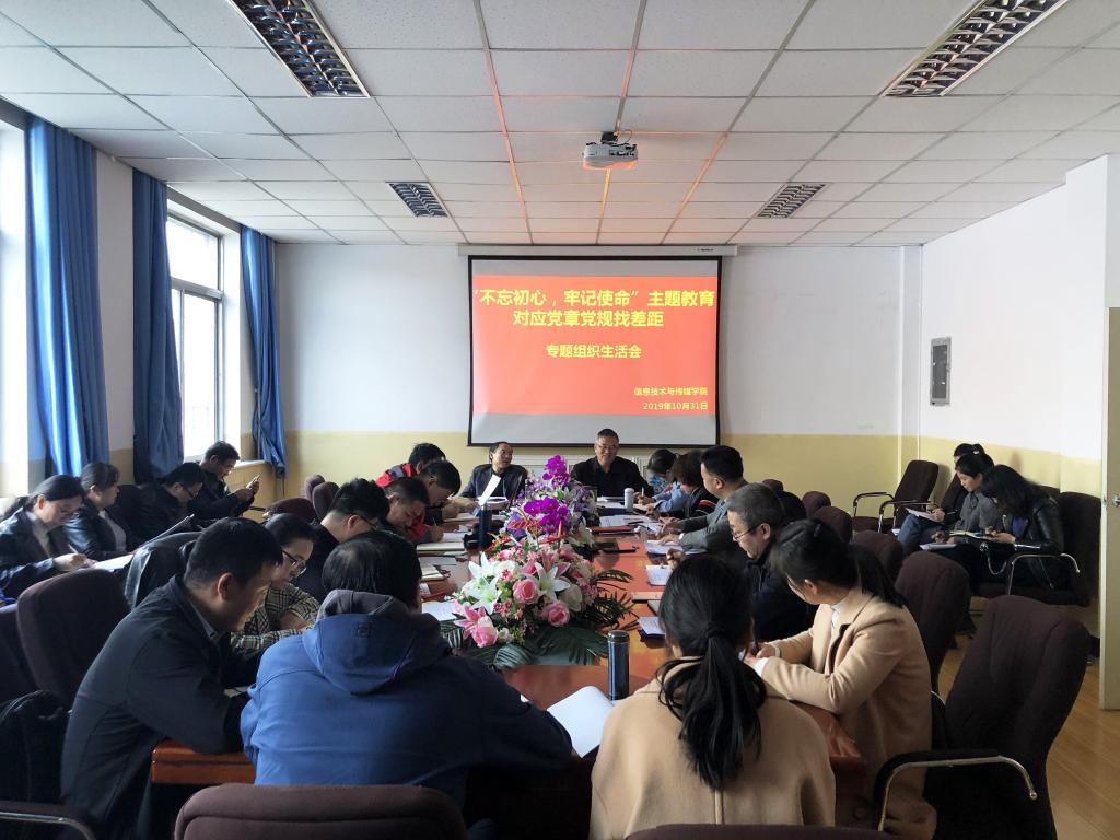 根据中央、省委及学校党委《关于在“不忘初心、牢记使命”主题教育中开展对照党章党规找差距的工作方案》的通知要求,10月31日下午,信息技术与传媒学院“不忘初心、牢记使命”主题教育对照党章党规找差距专题会议在学院会议室召开。学院领导班子、全体党员参加会议。